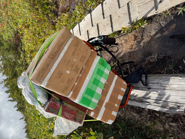 今日は食材の他に、明日トタン貼り作業のあと、ペンキ塗りをする予定なので、ペンキ薄め液も上げたので、、、かるく40kg越え。重かったです(。ŏ﹏ŏ)バッチリ5時間かかりました。