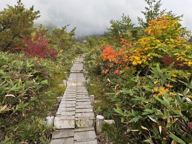 今日の大日平は曇り時々雲の中という空となってます。まず雲の間からの大日平の紅葉をどうぞ!