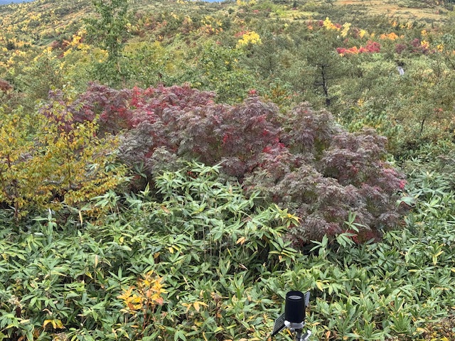 今年は黄色になる葉っぱが綺麗です。そして、山荘前のナナカマドもここまで変わってきました。大日平のピークももう少しです。