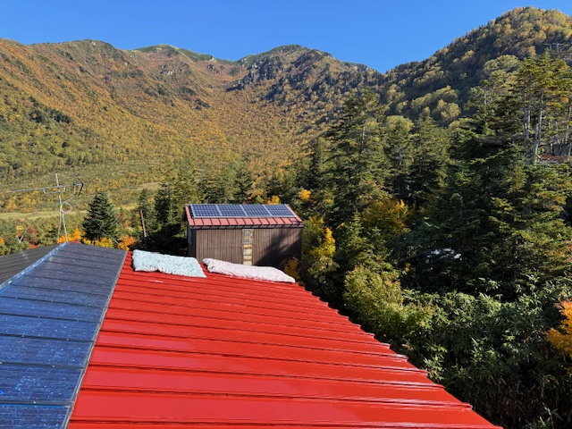 今日の大日平は久しぶりの青空でした。♡(> ਊ <)♡午後から曇ったりしたけど、、、良い空でしたよ。今日は踏ん張りデーと決意し、部屋掃除、トイレ掃除、風呂掃除して、お客さん10人分の布団を干したあと、、昨日できなかった納屋のソーラーパネルのカバー取り付けなど午前中してました。では、最高の青空と紅葉の写真をどうぞ!ちなみに夕焼けも最高でした♡(> ਊ <)♡